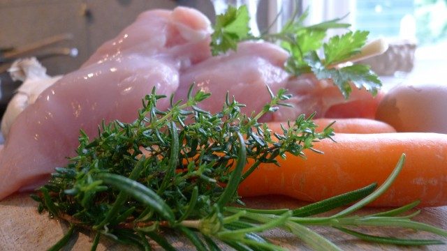 все ингредиенты перемешать и смолоть при помощи блендера или перемолоть кухонным комбайном, можно на ручной мясорубке. Поскольку в базовый рецепт не входит розмарин и тимьян, я добавила эти две травки для вкуса, потому что мне очень нравится их необыкновенный вкус в котлетах.