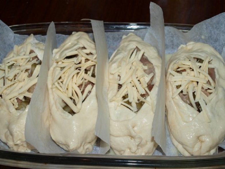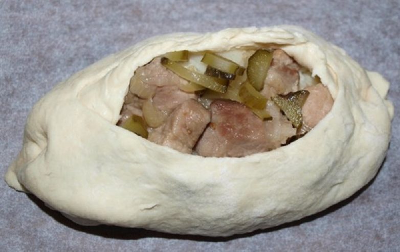 Вообще-то, эту начинку еще надо предварительно протушить. Я готовила эти лодочки, они делаются именно из дрожжевого теста. В отверстие еще можно добавить немного сливочного масла.