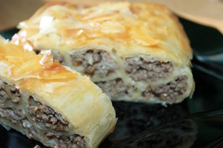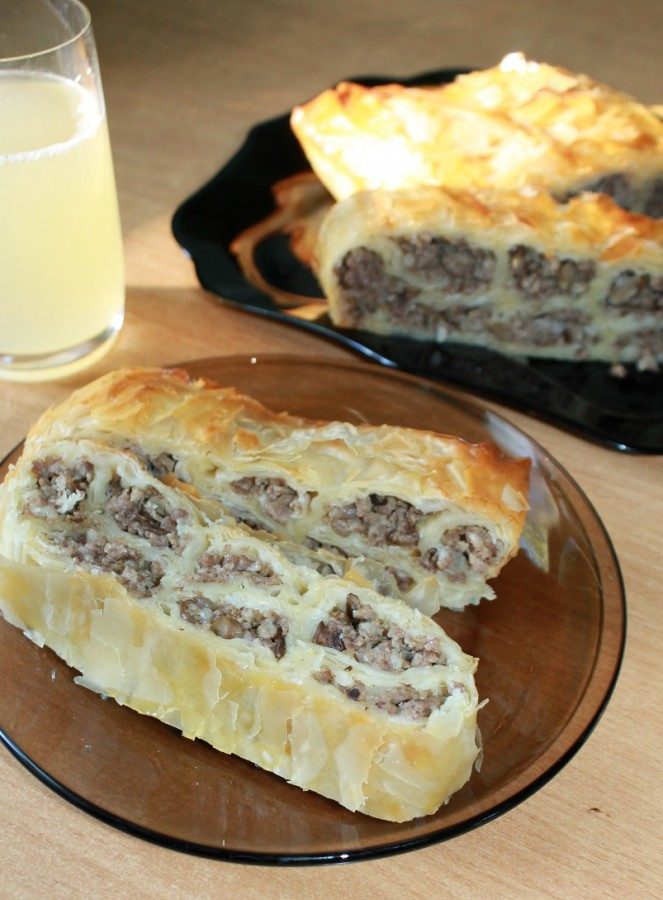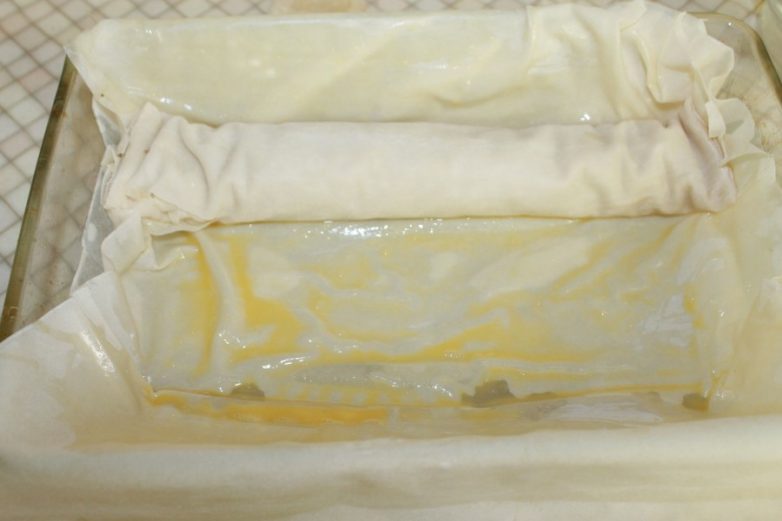 Фило это очень тонкие листы вытяжного теста, почти прозрачные, быстро высыхают и становятся хрупкими, поэтому работая с фило, не используемые листы нужно держать прикрытыми полотенцем или пищевой пленкой