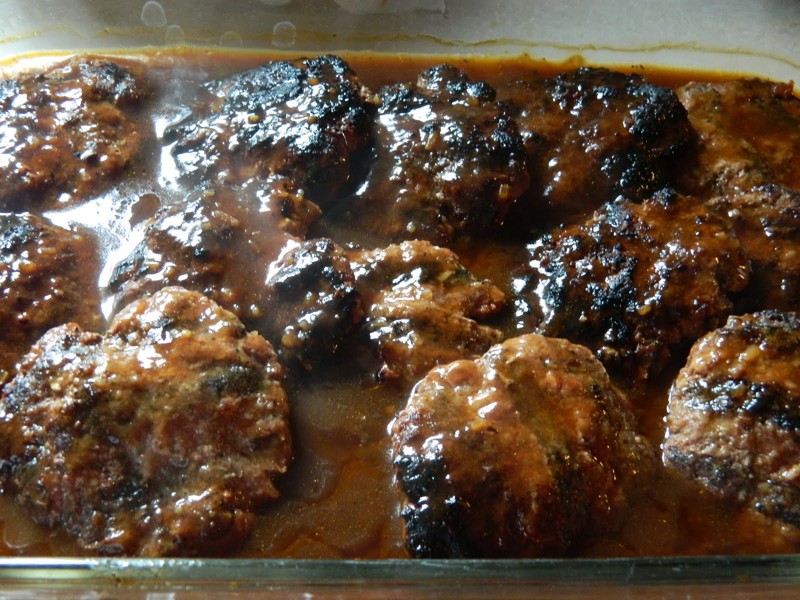 В миске смешиваем фарш, луковое пюре, вустерский соус, яйцо и отжатый размоченный хлеб. Солим и перчим по вкусу, формируем, жарим.
