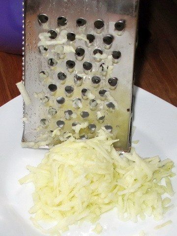 Яблоки очистить от кожуры, натереть на крупной терке и сбрызнуть лимонным соком.