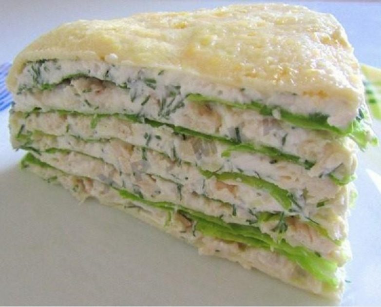 Замечательный закусочный торт, который прекрасно подойдет тем, кто заботится о своей фигуре. Может стать легким ужином или сытным низкокалорийным обедом!