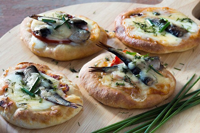 Мини-пицца со шпротами
