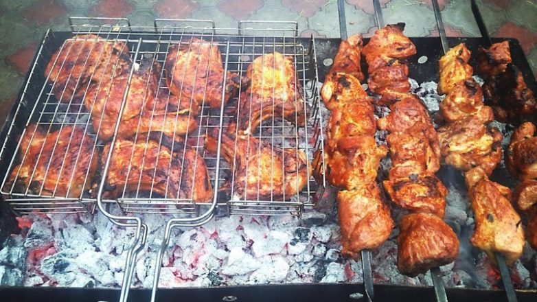 6) Сетку для шашлыка и шампура предварительно смажьте растительным маслом, чтобы мясо не прилипало к металлу.