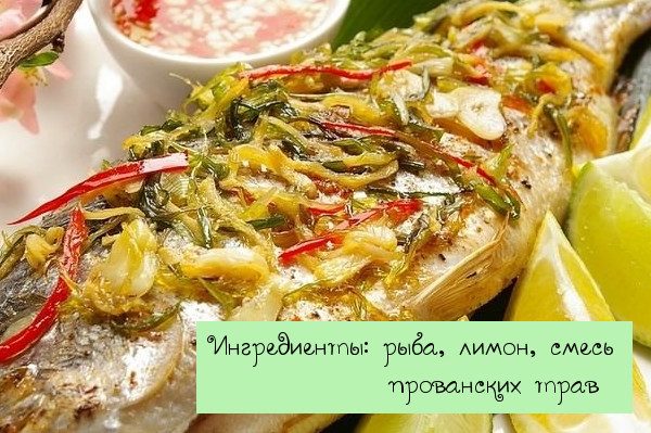 Ингредиенты: не слишком костлявая рыбка целиком (хороши для запекания минтай, форель, скумбрия) – по штуке на нос, сок из половинки лимона, смесь “Прованские травы”, соль.
