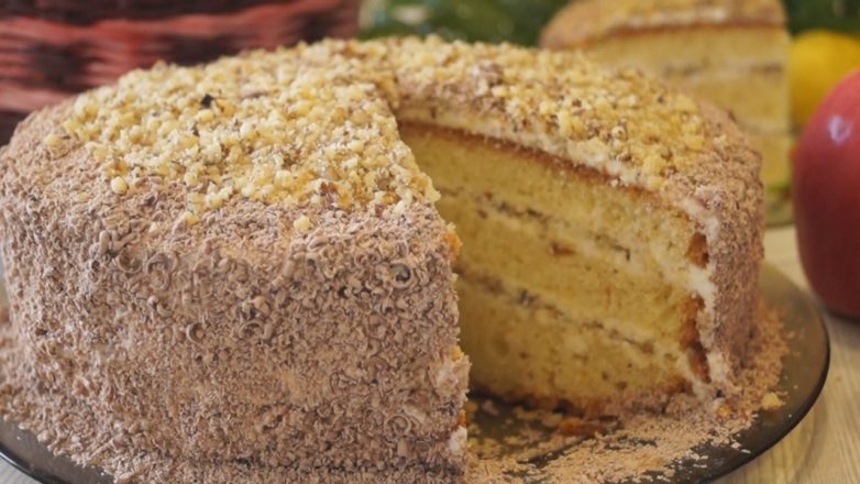 Быстрый и простой торт «Сметанник» с орехами!