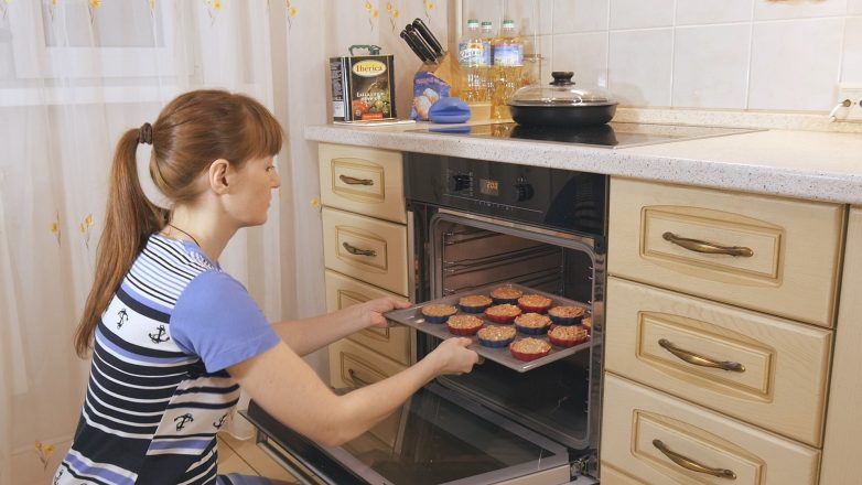 Разогреваем духовку до 200 градусов, ставим формочки на противень и выпекаем около 25 минут. На фото вы видите примерно половину получившегося количества кексов — я пекла в два этапа.