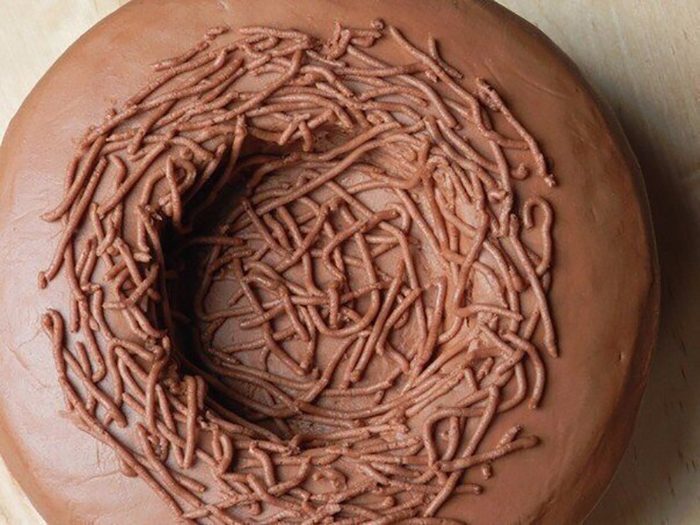 С помощью кондитерского шприца и крема укрась кулич полосками для имитации веточек гнезда.