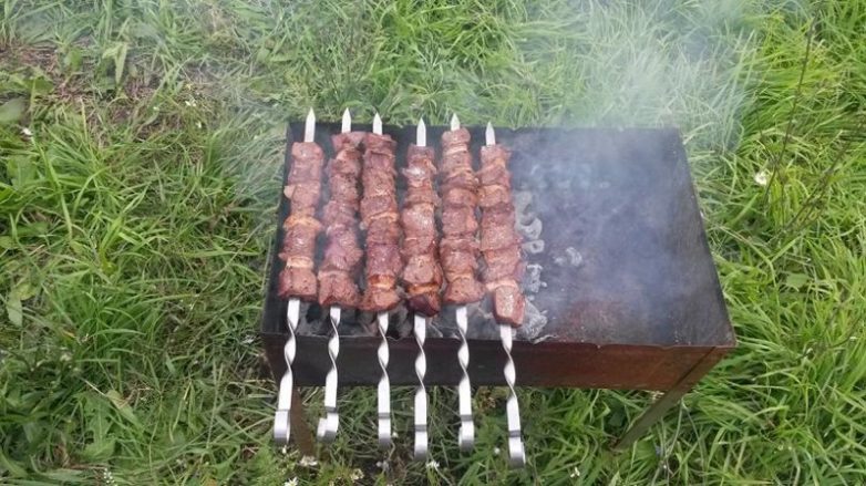 Отправляем будущий шашлык на мангал, где его дожидаются раскалённые угли: