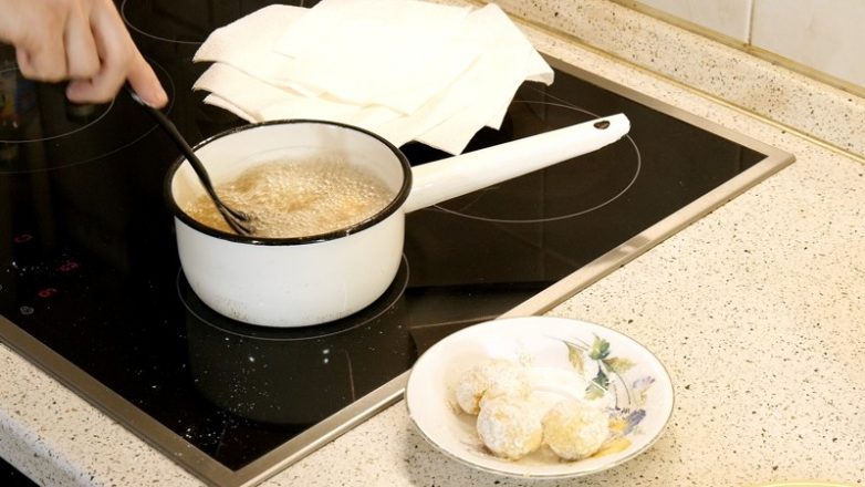 В процессе жарки шарики будут увеличиваться в размерах, поэтому закидывать в масло их надо не очень большими порциями.