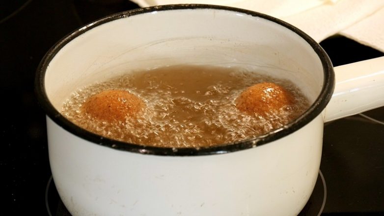 В кастрюльке, в которой собираемся жарить шарики, разогреваем большое количество растительного масла для фритюра (шарики должны будут полностью погрузиться в масло).