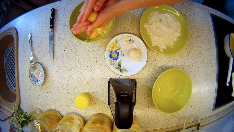 Формируем из этой смеси шарики, обваливаем их в муке и отправляем жариться во фритюр.