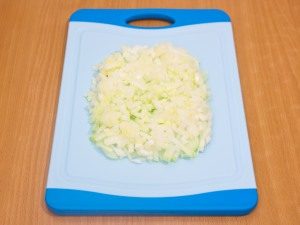 Лук мелко нарезать.