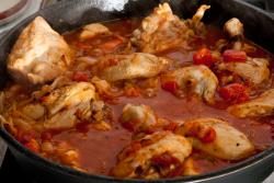 Помидоры нарежьте кубиками и добавьте к курице, перемешайте, можно влить немного горячей воды, если сока из помидор не слишком много.