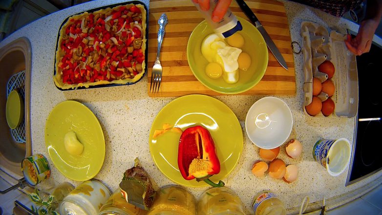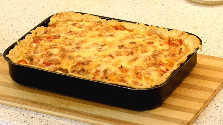 Последний слой — болгарский перец. Конечно же, вы можете любой из этих слоёв исключить, видоизменить, заменить другим — у вас получится шикарный пирог, подходящий именно вам :)