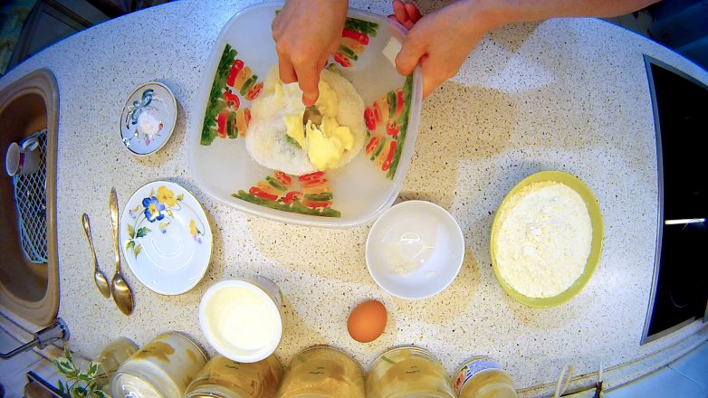 Убираем тесто в пакет или накрываем пищевой плёнкой и отправляем в холодильник на 30 минут.
