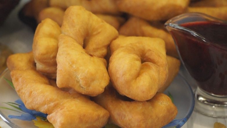 Прошло 30 минут, тесто раскатываем пласт теста толщиной 1см. Пласт теста разрезаем на полоски. Делаем в середине полоски и выворачиваем край полоски и поправляем. В сотейник или кастрюлю наливаем растительное масло, так чтобы вергуны плавали в масле. Разогреваем и опускаем вергуны жарим до легкой румяности с двух сторон примерно по 1 минуте с каждой стороны.Как я готовлю эти вкусные вергуны смотрите в моем коротеньком видео ниже.