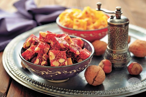 В странах арабского Востока также всегда почитали нугу — это лакомство называли «райской усладой падишахов». А готовили «усладу» так: в густой сахарный сироп вбивали яичные белки, кипятили смесь, всыпали в нее цукаты и орехи, тщательно перемешивали тягучую массу, ароматизировали лимонной цедрой или ванилью и тотчас же выливали на смазанную маслом мраморную доску. Затем нугу разравнивали с помощью деревянных лопаток, давали застыть и разрезали на небольшие кусочки, которые обваливали в сахарной пудре. Другие известные восточные сладости: шербет — сливочно-помадная масса с орехами и кусочками фруктов, шакер — сдобное печенье в виде шариков, полумесяцев или брусочков, курабье — песочное печенье с джемом и козинак — подсолнечные или кунжутные семечки, арахис или воздушный рис в застывшем карамельном сиропе.