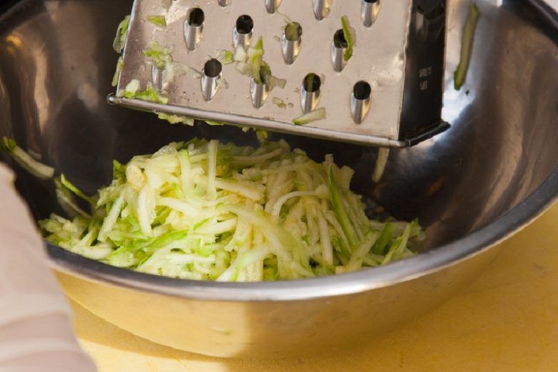 Обязательно отожми сок из кабачков, чтобы он не растекался в процессе выпекания. Вместо целого яйца можно добавить в тесто два желтка.