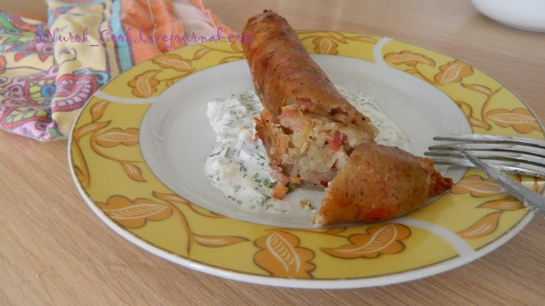 Набить колбаски. У меня как всегда коллагеновая оболочка.