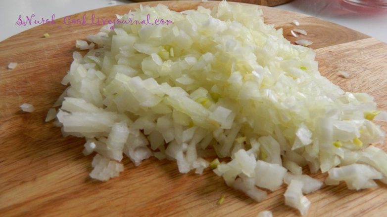 Лук, сало и копченое сало нарезать мелкими кубиками