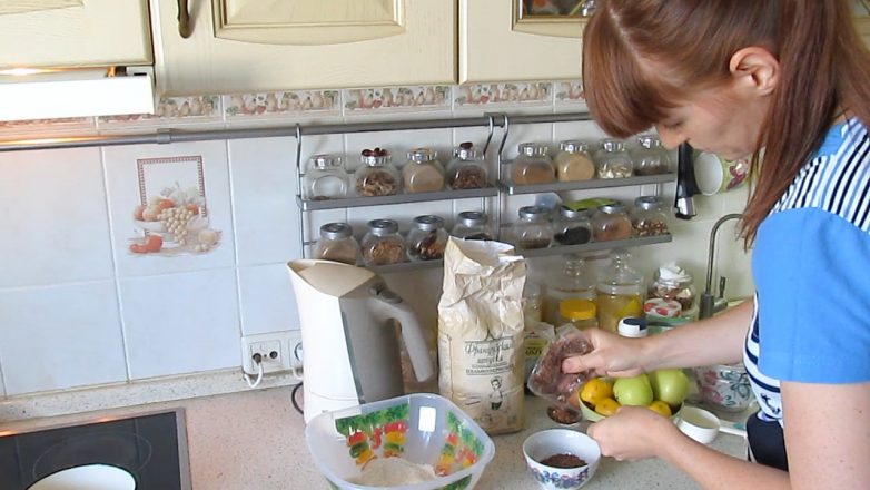 После добавления яблок тесто должно выглядеть так. Если оно вам кажется жидковатым, добавьте муки.
