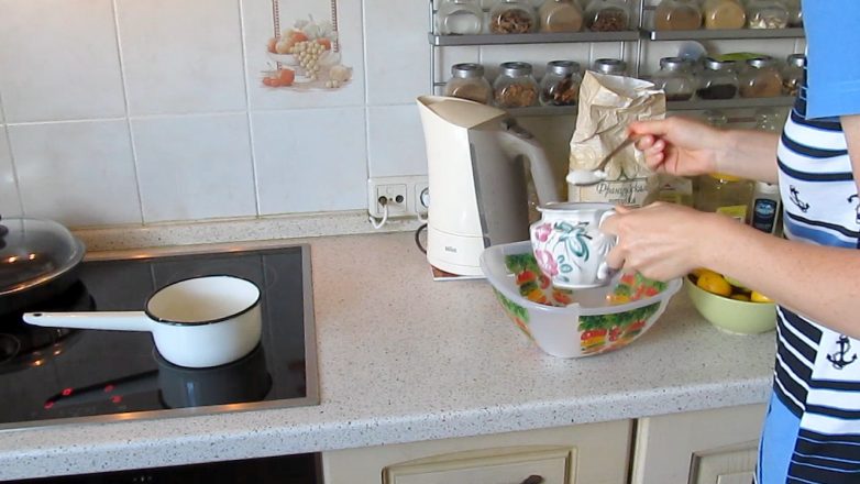 Растапливаем 25 грамм сливочного масла. Пока масло растапливается, смешиваем в миске 3 столовые ложки муки и 1 столовую ложку крахмала.
