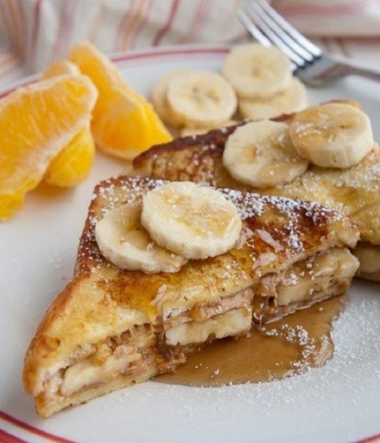 Смажьте каждый кусочек хлеба арахисовой пастой. На один кусочек положите ломтики банана и закройте другим кусочком хлеба. Растопите сливочное масло на сковородке на среднем огне. Обмакните ваш бутерброд с обоих сторон во взбитое яйцо и поджарьте на масле. Если у вас был квадратный кусочек хлеба в нарезке, разрежьте его по диагонали на 2 треугольника.