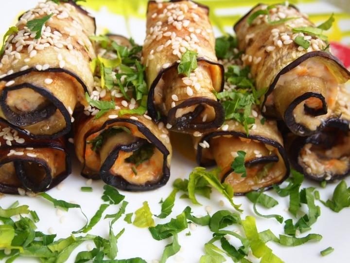 Рулеты из баклажанов с овощами