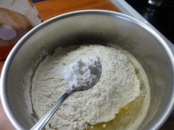 И быстро, той же ложкой, которой сахар отмеряли, размешайте тесто. Оно прекрасно и быстро замешивается, всю муку вбирает, от стенок посуды прекрасно отходит.