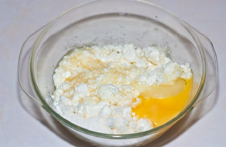 Хорошенько разотри творог, чтобы убрать все комочки.