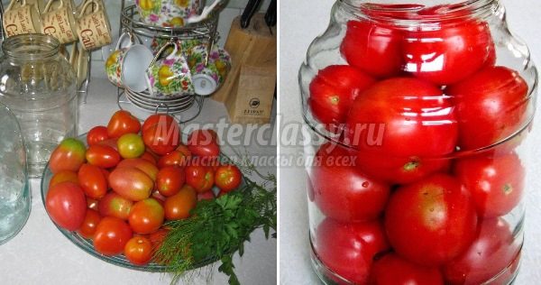 Чтобы «засолить» сладенькие пасленовые отбирают следующие необходимые продукты:- целенькие плоды томатов,- листочки черносмородиновые и хрена,- укропные сушеные зонтики,- перчик-горошек черный,- лимонная кислота (по щепотке на каждую литровую тару).Рассол объемом в 1 литр включает 7 ст.л. сахарного песка и ложку поваренной соли.Банки стерилизовать не обязательно; главное – тщательно их промыть и несколько раз выполоскать под водяной струей. Термообработка в этом случае излишня, так как овощи закладываются в емкость не прокипяченные и даже не бланшированные. В тару первыми кладутся подготовленные листочки, сушеная зелень и всыпается горсть перца и несколько зубчиков чищеного чеснока (4 шт. на литрушку). Плотно укладываются помидоры, и накрываются теми же листьями и чесноком.