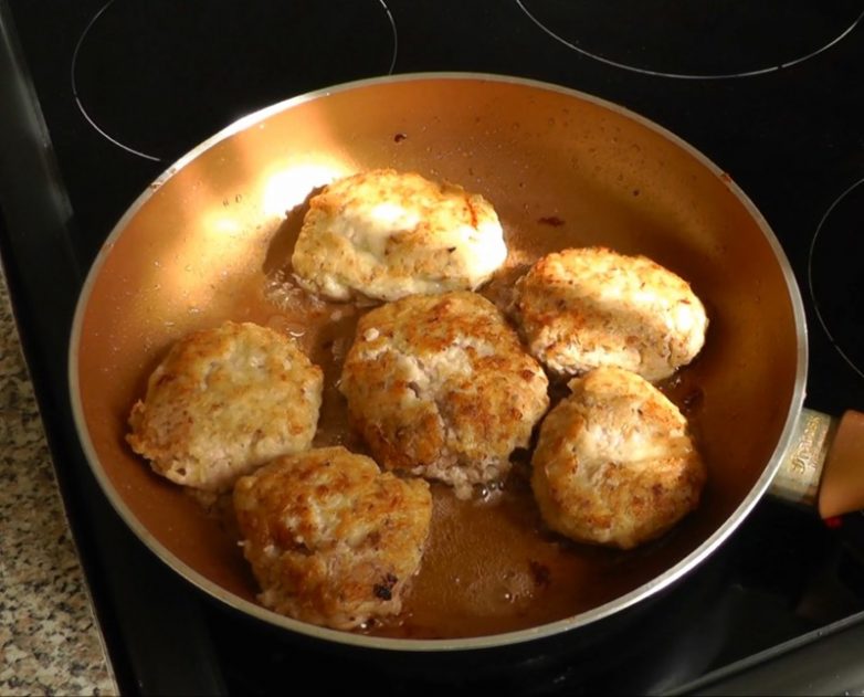 После этого мы убавляем огонь и доводим котлеты до готовности, накрыв крышкой, порядка 5-7 минут. Котлеты получились очень пышными, воздушными и сочными!
