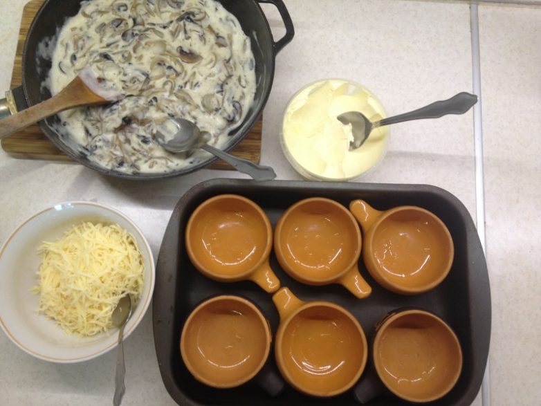 Вливаем соус к грибам и прогреваем всё вместе какое-то время.