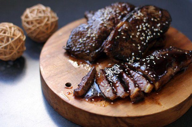 Соус терияки подходит не только для блюд из рыбы и морепродуктов. Попробуйте замариновать в нем говядину. Ее вкус получится необычайно сочным, а само мясо — нежным и очень вкусным.Ингредиенты:
