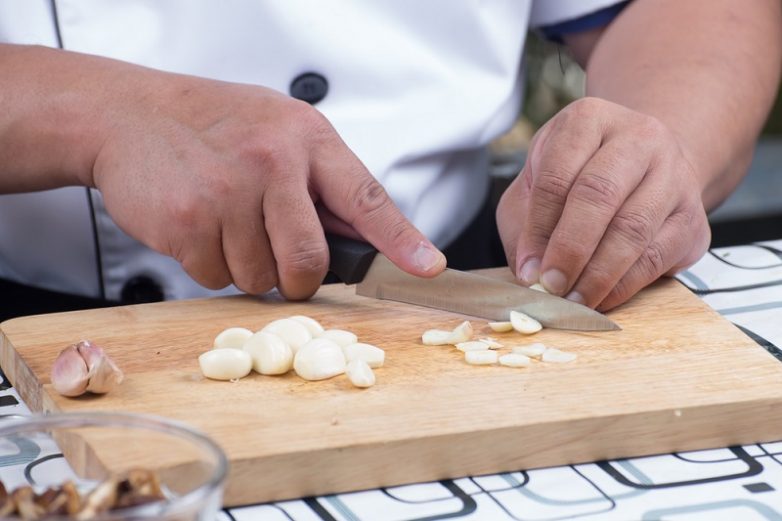 Нарежь чеснок.