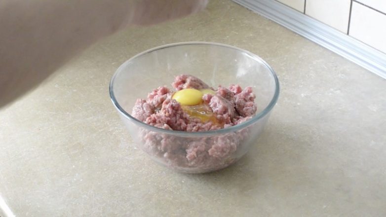 В фарш разбейте яйца, посолите, добавьте специи, если нужно, и добавьте обжарку. Хорошо перемешайте.