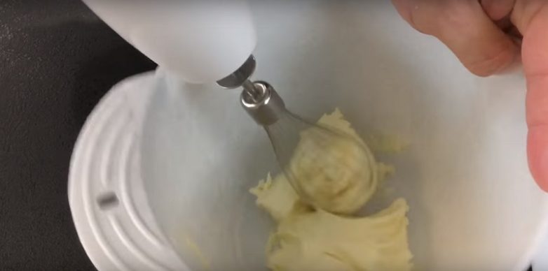 Нарежь сливочное масло кубиками и дай ему пару минут, чтобы размягчиться. С помощью миксера слегка взбей масло.