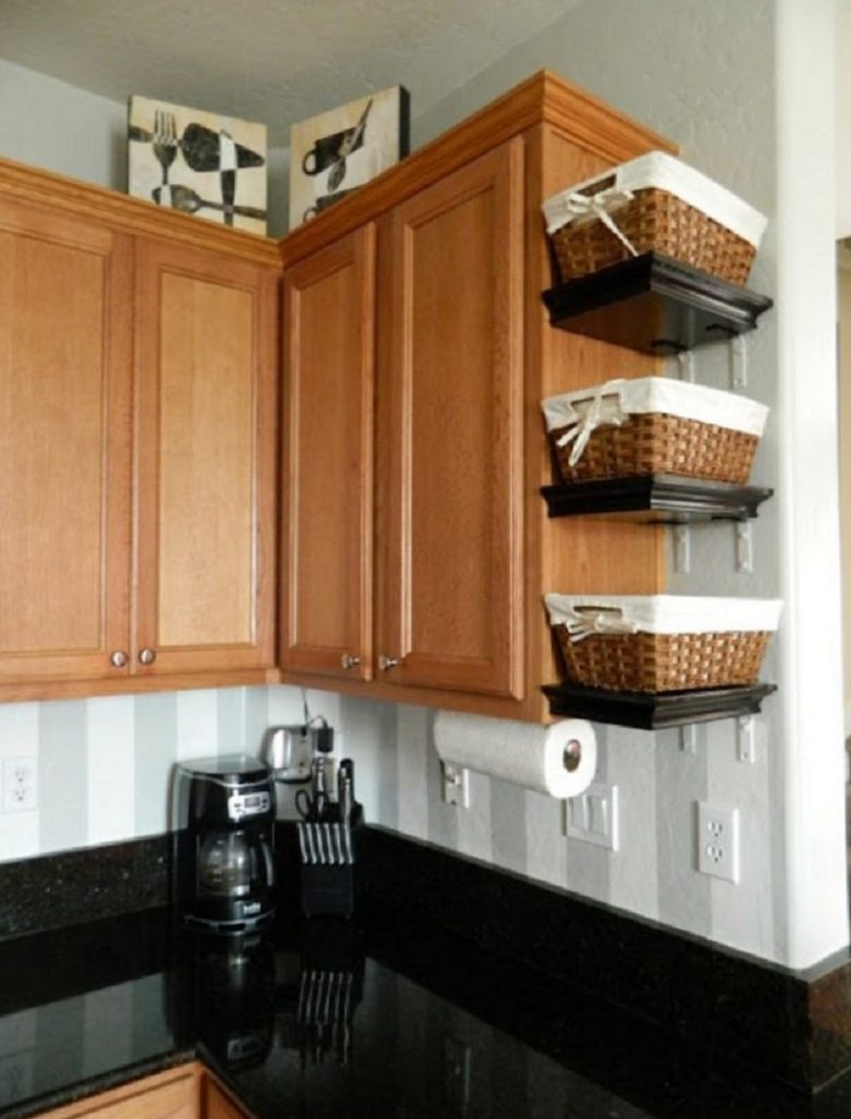 Подвесные корзинки станут незаменимым атрибутом не только внутри кухонной мебели, но и снаружи.