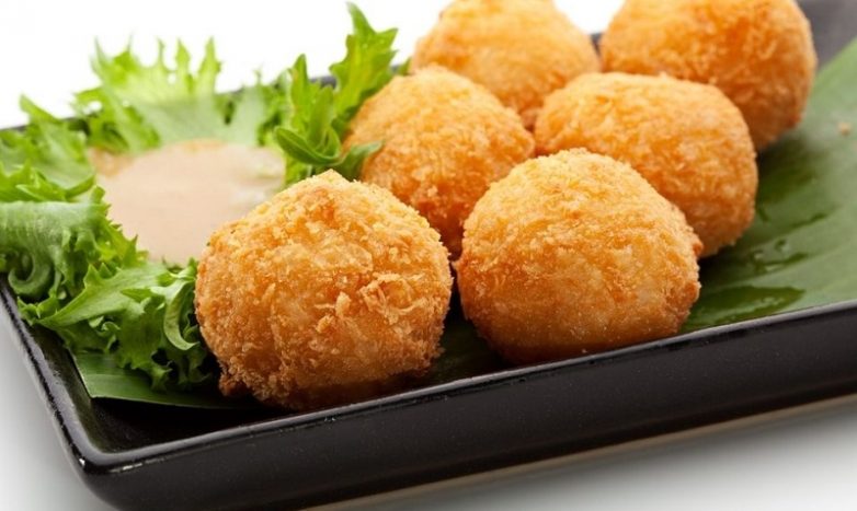 Не менее вкусны шарики с овощным наполнителем: зеленым горошком, кукурузой, морковью и зеленью. При этом сыр тоже не будет лишним.