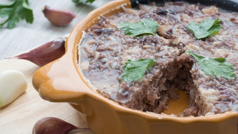 Такое привычное сытное блюдо придумали, опять же, не в России, а в Западной Европе. Охлажденный желеобразный густой бульон с кусочками мяса под разными названиями популярен в Германии, Франции, Латвии и других европейских странах с очень давних времен.