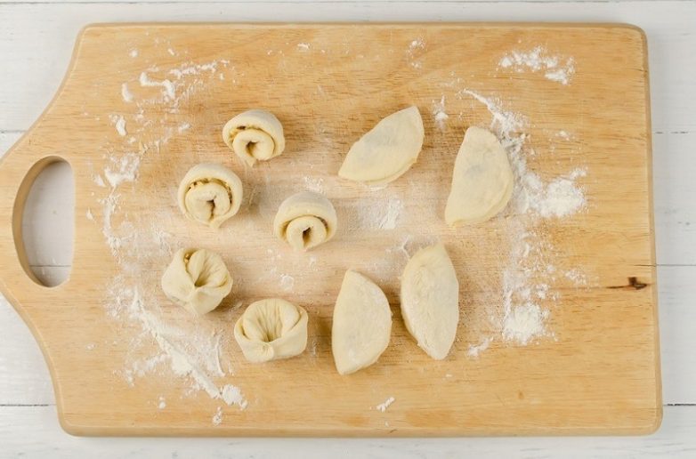 Сложи кружок с начинкой пополам.