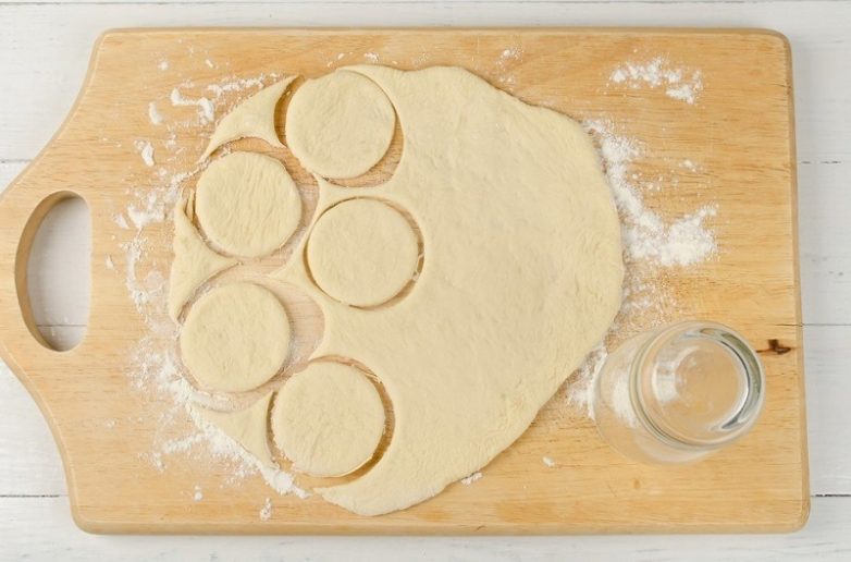 Выдави стаканом из теста кружки диаметром 6–7 см.
