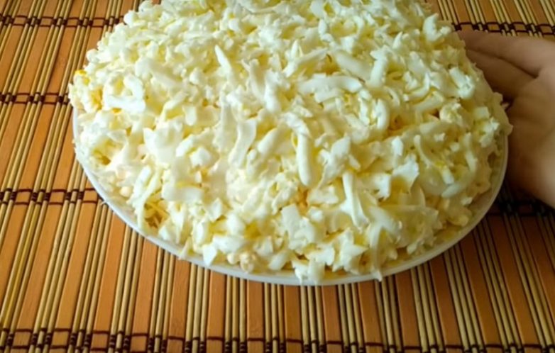 У этого блюда эффектный внешний вид, как у невесты на свадьбе. Если традиционные шуба и оливье тебе надоели, попробуй приготовить этот легкий салат с курицей.