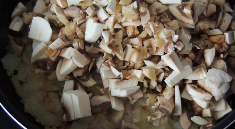 Мелко нарежь лук и грибы.