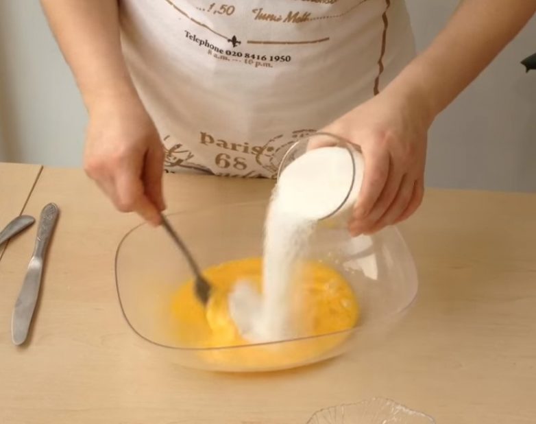 Отдели желтки от белков, желтки разотри с сахаром.