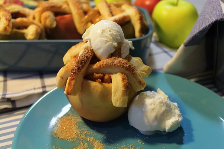Сегодня у нас очень простой в приготовлении и в то же время вкусный и ароматный десерт: запечённое яблоко с начинкой из мякоти, смешанной с корицей и медом, и покрытое сверху сеточкой из слоеного теста. Отличный быстрый десерт для холодного промозглого осеннего вечера.