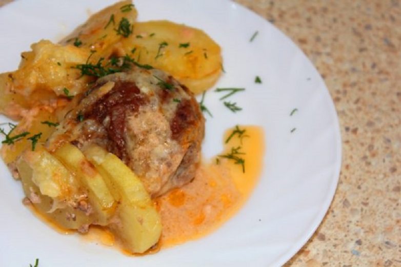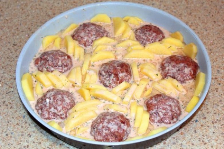 Не проще ли просто отварить картошку и те же ежики с соусом подать? К чему такие заморочки? А на скорую руку уж пельмени сойдут, ну или другие полуфабрикаты…