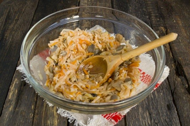Итак, выкладываем в миску пол литровую баночку грибной солянки с капустой. Нужно помнить, что соли в консервах обычно много, поэтому остальные ингредиенты следует досаливать с осторожностью!