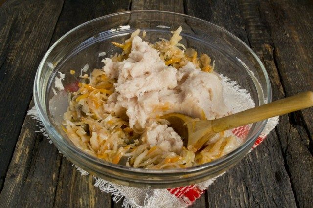 Добавляем куриный или другой мясной фарш